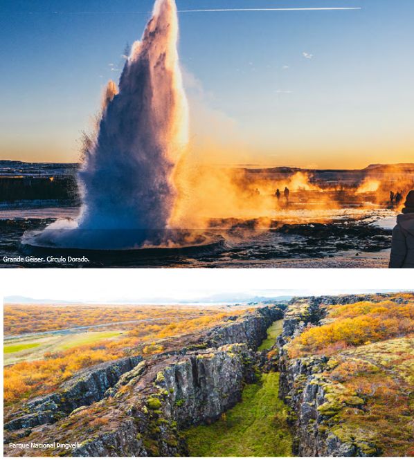 Descubra a magia da Islândia. Prepare-se para uma viagem inesquecível através das impressionantes paisagens da Islândia. Desde as maravilhas geotermais do Círculo Dourado e a serenidade de Hella, até as cascatas dramáticas e as praias de areia preta da Costa Sul, e a vibrante energia de Reykjavik— esta aventura oferece a combinação per- feita de natureza, cultura e encanto. Itinerário: Reykjavik / Akureyri / Myvatn / Hofn / Hella